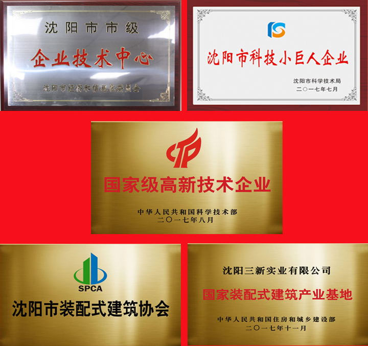 春華秋實(shí),2017年是三新集團(tuán)豐收的一年,借力國家創(chuàng)新戰(zhàn)略的成功實(shí)施,集團(tuán)業(yè)務(wù)長足發(fā)展,實(shí)力與日俱增。集團(tuán)相繼獲得國家科技部授予的“高新技術(shù)企業(yè)”、沈陽市高新技術(shù)和科技小巨人“雙培育”企業(yè)、“國家裝配式建筑產(chǎn)業(yè)基地”和“全國科技低碳鋼結(jié)構(gòu)產(chǎn)業(yè)示范基地”、沈陽市“重合同守信譽(yù)”單位。三新集團(tuán)的技術(shù)研發(fā)中心被評為市級企業(yè)技術(shù)中心。三新集團(tuán)產(chǎn)品被列入《遼寧省重點(diǎn)推廣應(yīng)用工業(yè)產(chǎn)品目錄(2017年版)》、沈陽市重點(diǎn)工業(yè)優(yōu)質(zhì)產(chǎn)品名錄。
