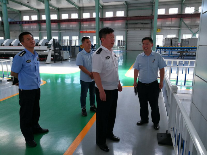 7月20日下午,開發(fā)區(qū)公安分局魏智勇局長及紀(jì)檢室主任周剛帶隊(duì)在公司副總經(jīng)理吳龍陪同下,對我公司生產(chǎn)車間進(jìn)行走訪。魏局長及周主任參觀了公司車間和裝備,對我公司的產(chǎn)品以及公司在疫情期間的生產(chǎn)和經(jīng)營情況給予了高度評價(jià)。