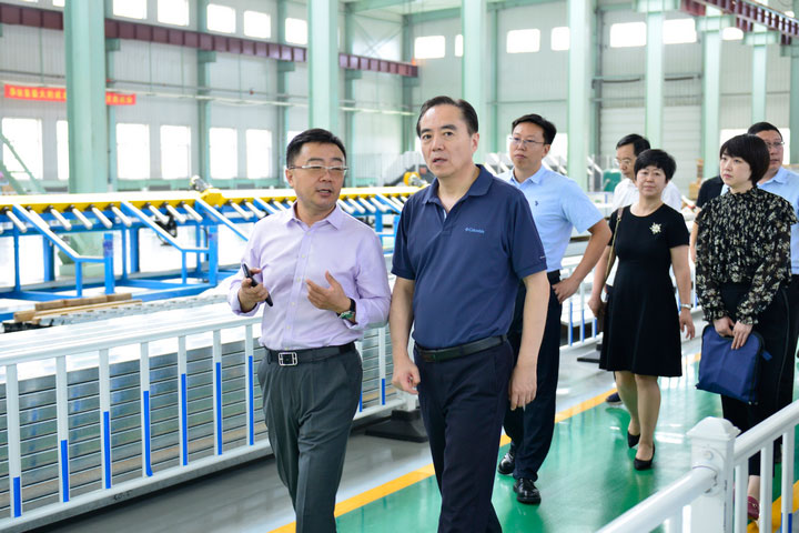 8月31日上午,市委組織部王義東副部長(副廳長級(jí))、市委組織部人才工作三處周宏波處長、鄧喆副處長會(huì)同市城鄉(xiāng)建設(shè)局二級(jí)巡視員隋明悅、市城鄉(xiāng)建設(shè)局現(xiàn)代建筑產(chǎn)業(yè)發(fā)展部部長雷云霞、主任科員武凱華等蒞臨我公司進(jìn)行調(diào)研。在總經(jīng)理洪長禧、常務(wù)副總經(jīng)理趙丹及副總經(jīng)理吳龍的陪同下調(diào)研組一行參觀了公司生產(chǎn)車間、裝備及樣品展廳,各位領(lǐng)導(dǎo)對(duì)我公司的產(chǎn)品和綜合實(shí)力給予很高的評(píng)價(jià)。