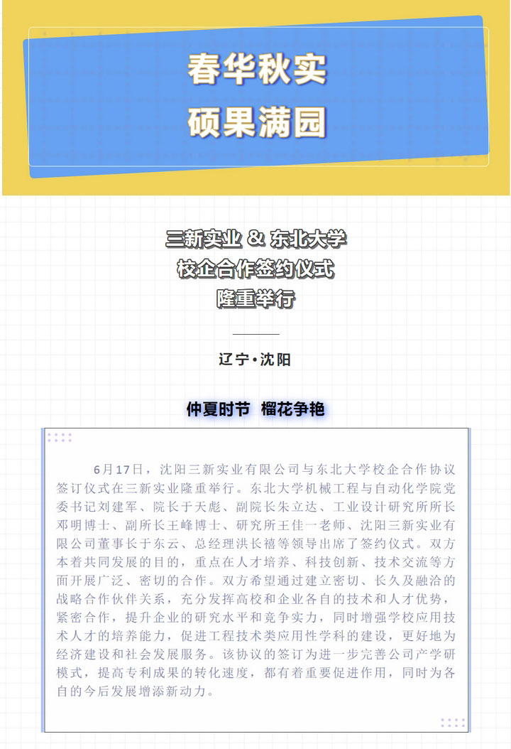 春華秋實,碩果滿園——三新實業(yè)與東北大學簽訂校企合作協(xié)議