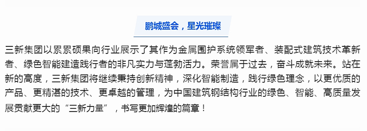 閃耀鵬城!三新集團全國鋼結構行業(yè)大會載譽歸來,創(chuàng)新與實力鑄就輝煌!